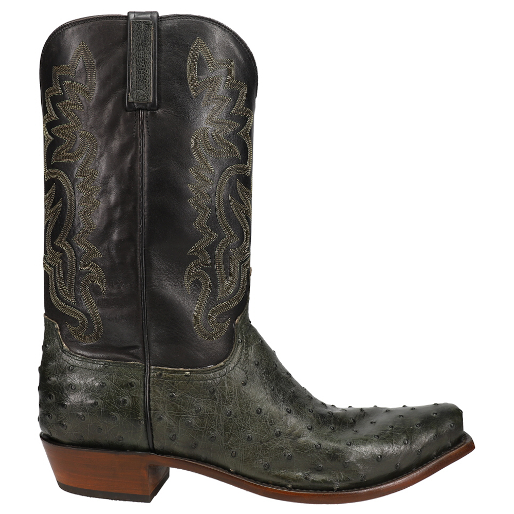 Lucchese Dante Ostrich Snip Toe Cowboy Boots Black Green Mens Cowboy Boots